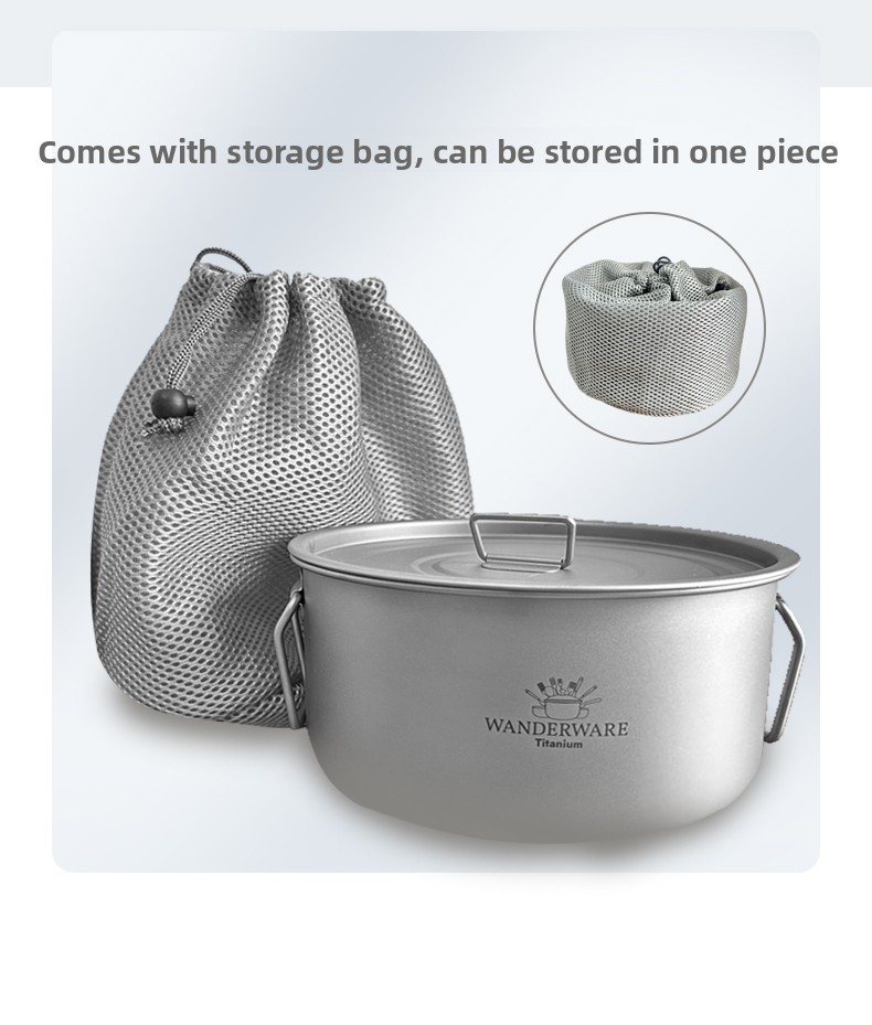Come with a storage bag, you can just hang on your backpack, super portable. This pot is the best choice for outdoor camping, travelling, hiking, trekking, picnic, climbing, fishing…