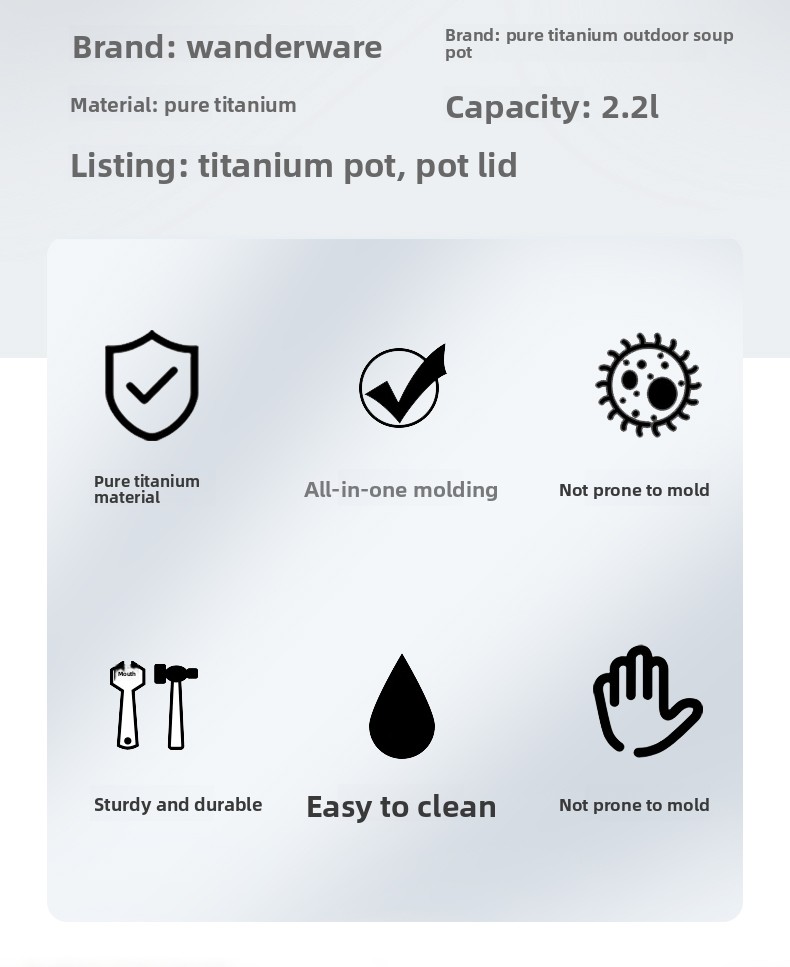 Made of premium titanium, Weight: about 319g/11.2oz/0.7lbs. Never rust, anti-corrosion, good heat, high hardness, no deformation, and solid structure.