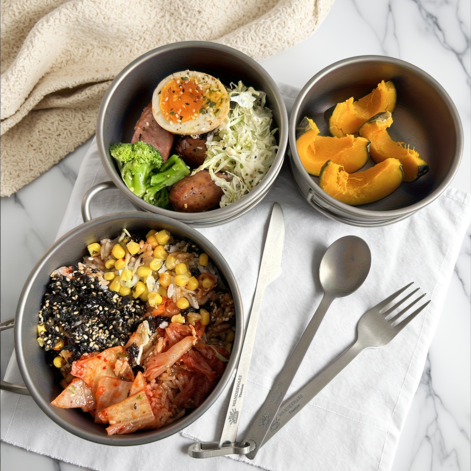 Be the first to review “Set of 3/6 titanium bowls and dishes with folding handles”