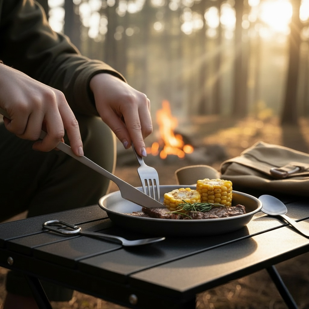 Upgrade your dining experience wherever you are with our sleek and durable 3-piece titanium cutlery set. Perfect for daily use, travel, camping, office lunches, or picnics, this reusable utensil kit helps you reduce plastic waste with style.