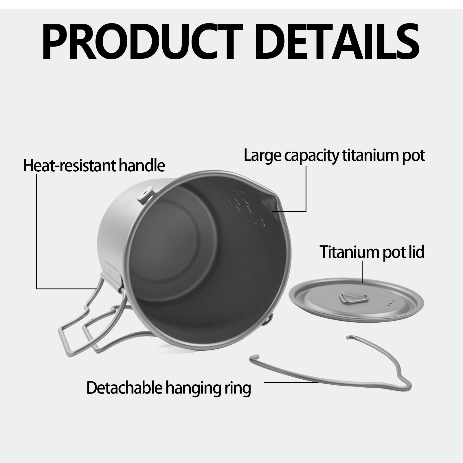 FOLDING HANDLE: This titanium cup is equipped with a folding handle, which can prevent burns during use and save space by folding and storing it after use. Making it more convenience to storage and carry it everywhere.