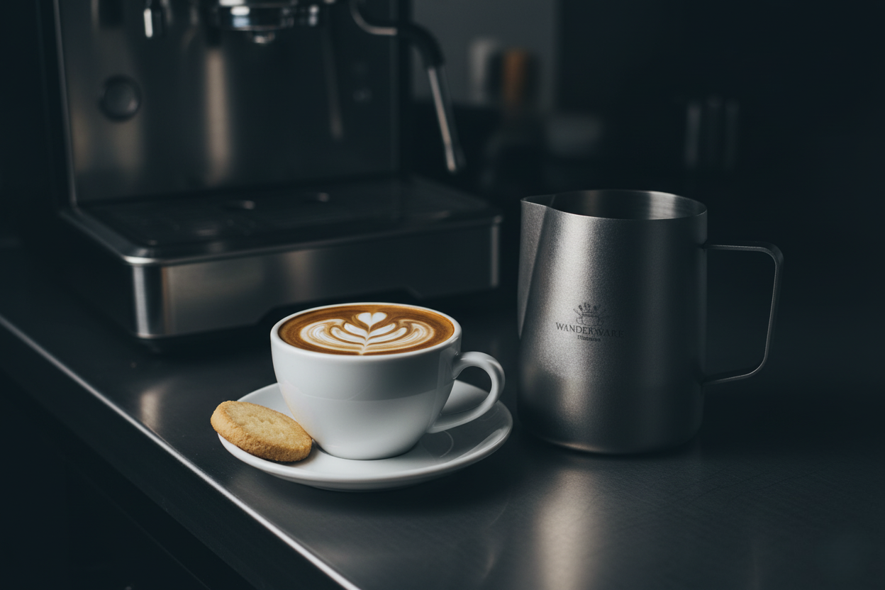 Perfect Espresso Accessories – Perfect milk steamer cup for making frothing or steaming milk for espresso, cappuccino or hot chocolate. Be your own barista at home and office with this milk jug.
