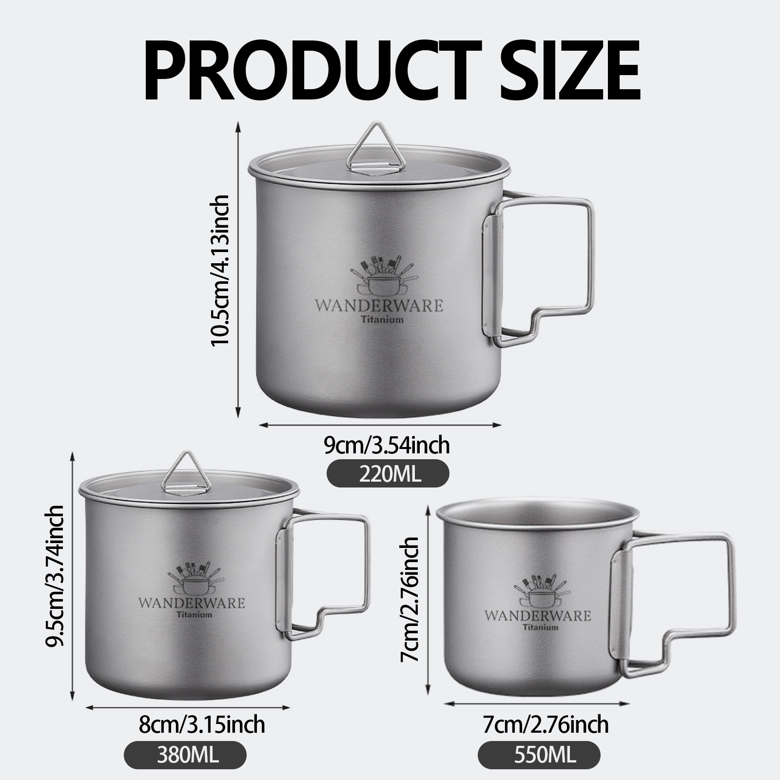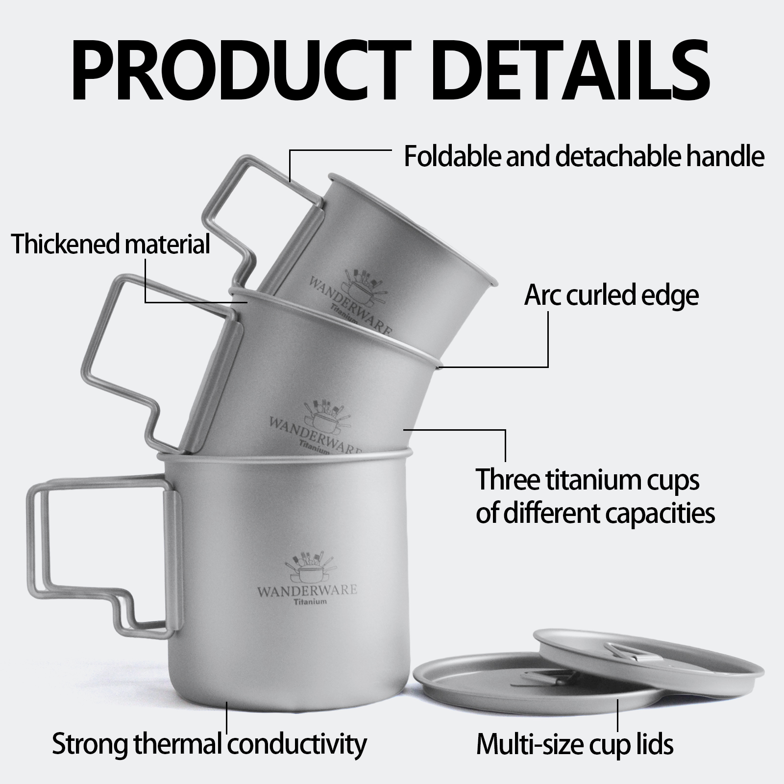 The Wanderware Pure Titanium 3-Piece Cup Set (220ml, 380ml, 550ml) is the perfect essential for your outdoor adventures. Each cup is crafted from premium pure titanium, offering exceptional corrosion resistance and high-temperature durability. Whether hiking, camping, traveling, or for everyday home use, these lightweight titanium cups deliver an efficient and safe drinking experience.